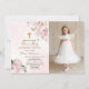 Blush Pink Rose Floral First Holy Communion Photo Invitation