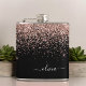 Blush Pink Rose Gold Black Glitter Monogram Name Hip Flask