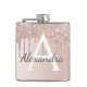 Blush Pink Rose Gold Glitter and Sparkle Monogram Hip Flask