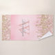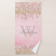 Blush Pink Rose Gold Glitter Drips Monogrammed Bath Towel