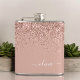 Blush Pink Rose Gold Glitter Monogram Name Hip Flask