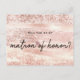 Chic girly matron of honour proposal postcard featuring unique trendy pink/rose gold background and typography ''matron of honour'' in modern lettering.