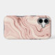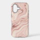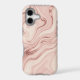 An elegant liquid marble texture featuring soft blush pink and cream swirls accented by shimmering metallic rose gold liquid veining. This sophisticated design has a smooth, luxurious abstract flow, perfectly suited as a background for a chic and modern iPhone case. A high-end luxury aesthetic captured in a flawless vertical composition. No part of the design is cut off, flowing seamlessly to all edges.