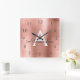 Blush Pink - Rose Gold Metallic Monogram Name Square Wall Clock