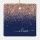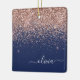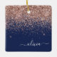 Blush Pink Rose Gold Navy Blue Glitter Monogram Ceramic Ornament