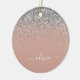 Blush Pink Rose Gold Silver Glitter Monogram Ceramic Ornament