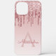 Blush Pink and Rose Gold Ombre Sparkle and Faux Dripping Glitter Girly Modern Monogram First Name and Initial Smart Phone Case. Please contact the designer for matching items
