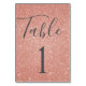 Blush Pink - Rose Gold Sparkle and Glitter Script Modern and Elegant Table Number . The table number can be updated and changed on this dusty pink girly card.