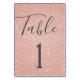 Blush Pink - Rose Gold Sparkle and Glitter Script Modern and Elegant Table Number . The table number can be updated and changed on this dusty pink girly card.