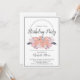 Blush pink and coral roses any age birthday party invitation with rose gold glitter heart leaves. Elegant with a stylish modern script typography.