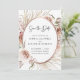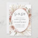 Boho Blush Pink Floral Dried Palm Leaves Rose Gold Metallic Frame Wedding Save the Date... Our luxe boho floral Save the Date card features an arrangement of beautiful blush pink roses, eucalyptus, and dried palm leaves around a faux rose gold metallic oval frame creating an elegant border for the invitation text within. The back of the card contains your wedding website information and a QR code graphic template you can replace with your own (or delete). All example text on both sides of the card (except the Save the Date text graphic) can be easily revised with your own details on the personalisation template.