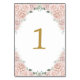 Blush Pink Roses Floral Birthday Sweet 16 Wedding Table Number