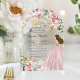 Personalise this elegant blush pink floral greenery Quinceañera / Sweet 16 birthday acrylic arch invitation easily and quickly. Simply click the customise it further button to edit the texts, change fonts and fonts colours. Featuring beautiful blush pink roses, greenery and a girl dressed in a blush pink ball gown. Matching items available in store. (c) Somerset Fine Paperie