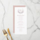 Add a touch of sophistication to your special day with this wedding menu card, featuring simple elegant calligraphy and a refined bride and groom monogram. Designed in stylish pale blush pink, this reception dinner template showcases a classic wreath laurel motif with delicate greenery leaves foliage, creating a timeless and romantic look for your rehearsal party table. The traditional typography design and classy ampersand initials add an elegant, personalised touch. Perfect for an effortlessly chic wedding