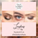 Lashes Studio Window Cling - Blush Pink Black Script Font Your Logo Here 3 Photo Lashes Business with name and social media handle.