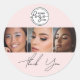 Blush Pink Script Logo Photo Lashes Thank You Classic Round Sticker