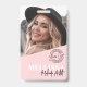 Modern Makeup Artist Employee Badge. This sleek vertical design features your logo on both the front and back for a cohesive, branded look. The front includes a single photo on the top half, shown in colour but easily changeable to black and white using the photo filter tool. You can keep the sample image or replace it with your own portrait for a personalised touch.