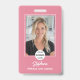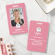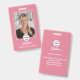 Makeup Business Employee badge featuring a customisable photo and business logo on the front along with popular white script and sans serif typography for your. Customisable "if found return to" with logo and business details on the back.