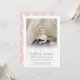 Minimalist baptism invitation in with baptism written in a blush pink brush script. Add name and text in soft grey. Personalise with a photo of your baby. The back features a blush and white pattern with crosses.