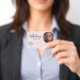 Elevate your beauty brand with this elegant makeup artist photo name badge, featuring a soft blush background, modern handwritten script, minimalist beauty line art, and a customizable circular photo space.