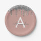 Blush Pink Silver Glitter Monogram Birthday Paper Plate
