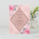 Blush pink Wedding invitation adorned with elegant peony florals and shimmering silver glitter accents.