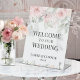 Blush Pink Silver Greenery Welcome To Our Wedding Pedestal Sign