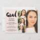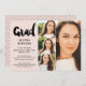 Modern simple black and pastel blush pink Grad script 4 photos graduation announcement with photo booth style collage, with geometric dots pattern at the back, all the colours are editable.