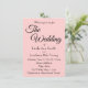 Simple style, wedding invitation that features a trendy, blush pink colour background along with the future bride and groom names and event date, time, location, and registry printed in black, stylised script. Personalise your wedding invitation by replacing info with your own. Select your invitation paper style and quantity. Designed to coordinate with our Blush Pink Simple Style Wedding collection.
