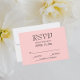 Simple style RSVP card for weddings and special events in a blush pink colour along with your event date in black lettering. Customise your card by editing the date field with your own event date. Select your paper style.