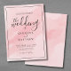 This simple and elegant wedding invitation features a blush pink watercolor background with black fonts. The design allows you to customise the colours, as the watercolor sits atop the coloured background. At the top, "The Wedding Of" is prominently displayed in large and bold script calligraphy, complemented by a classic serif font and script accents for the rest of the text. A thin black line frame around the edge adds a touch of sophistication. This modern, minimalist invitation is perfect for spring, summer, and any time of the year. Its chic and understated elegance makes it a versatile choice for any wedding theme, adding a touch of class to your special day. Chic Simple Minimalist Elegant Watercolor Blush Pink Wedding Invitation. Available as a printed invitation, or as a downloadable digital invite that you can send in e-mail or have printed locally!