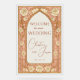 Make a grand entrance with this luxurious wedding welcome sign featuring a rich gold background and stained glass details. Embellished with soft cream roses, this design blends timeless elegance with artistic flair. Personalize with your names and date for a sophisticated touch to your ceremony or reception.