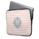 Blush Pink Stripes with Grey Monogram Laptop Sleeve