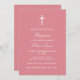 Blush Pink Stylish Traditional Baptism Invitation, please personalise as desired, using the online personalisation template before ordering. The invitation features both the cross and the stylish elegant text on a lovely blush pink background.