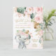 Blush Pink Tropical Floral Elephant 1st Birthday Invitation