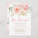Invite your guests in style with this beautiful blush pink floral twin girls baby shower invitation.