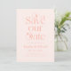 Stylish and elegant save the date card featuring typography text that says "save our date" in blush pink colour. You can add a photo on the back.