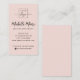 Vertical, blush pink or any colour business cards with customisable logo and template fields for your name, title/company name, contact information and social media on the front. You can change fonts, font and background colours with the design tool.