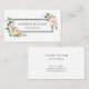 This business card features painted watercolor flowers in blush pink, white, and green foliage with geometric frames. For more advanced customisation of this design, Please click the "Customise" button.