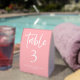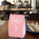 This blush pink wedding table number paper table tent brings a soft, romantic touch to your reception décor. Its gentle pastel tone creates an elegant and welcoming atmosphere that complements a wide range of wedding themes. The clean, modern typography keeps table numbers easy to read for guests while maintaining a refined aesthetic. Sturdy, high-quality paper ensures the tent stands beautifully throughout the celebration. The minimalist design allows the blush color to shine without overwhelming the table setting. It’s a graceful and stylish detail that adds charm and cohesion to your wedding décor.