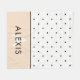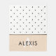 This stylish and chic blanket features black and white polka dots, with a bottom border in blush pink. Personalise with your name and initial.