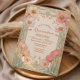 This blush poppy design brings soft romantic florals and delicate Art Nouveau detailing to your Quinceañera celebration. Gentle pink hues, flowing botanical lines, and a warm cream center create a dreamy vintage atmosphere that feels both elegant and timeless. The illustrated floral frame adds a refined, feminine touch that beautifully highlights your event details. Personalize the wording to create a keepsake worthy of this milestone celebration.