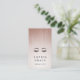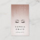 Elegant vertical business card design features classic black lettering on a blush pink ombre background adorned with strands of faux rose gold foil string lights. Personalise with two lines of custom text on the front a pair of lush eyelashes and eyebrows, and add your full contact information to the reverse side. A chic choice for makeup artists, lash specialists, brow techs, aestheticians and beauty industry professionals.