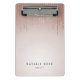 Chic clipboard features two lines of custom text in classic black lettering on a blush pink ombre background adorned with strands of faux rose gold foil string lights. Design repeats on reverse side. Please note that this clipboard is a mini size; full size version also available in our Blush Rain collection.