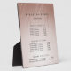 Elegant plaque with easel displays your services, price list or business information in classic black lettering on a blush pink ombre background adorned with strands of faux rose gold foil string lights. Includes three customizable headings and body text fields. To adjust layout, enter your text and then use the Customize function to change positioning and font sizes.