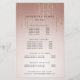 Elegant flyer design displays your services, price list or business information in classic black lettering on a blush pink ombre background adorned with strands of faux rose gold foil string lights. Includes four customisable headings and body text fields, and space for your business contact information along the bottom. To adjust layout, enter your text and then use the Customise function to change positioning and font sizes.