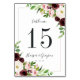 Chic floral table number cards feature clusters of watercolor flowers in blush pink, burgundy marsala and ivory, framing your table number in rich off-black. Personalize with your names and wedding date, or name each table for an extra personal touch. Design repeats on reverse side. Coordinates with our Blush Romance wedding invitation suite in an elegant color palette of blush and burgundy.