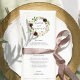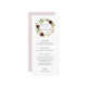 Chic floral wedding menu features your starter courses, entrees and desserts in elegant lettering, with your names and wedding date encircled by a watercolor wreath of flowers and foliage in blush pink, burgundy marsala, ivory and spring green. Coordinates with our Blush Romance wedding collection.