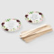 Our chic floral wedding program fan features your ceremony details in elegant lettering, encircled by a wreath of watercolor flowers and foliage in blush pink, ivory, burgundy marsala and spring green. Reverse side lists the members of your wedding party with easily editable text fields. Coordinates with our Blush Romance wedding invitation collection. Use the template fields to add your ceremony and bridal party information, and then click "Customise It" to reposition elements if needed.