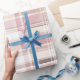 Blush Rose Cream Brown Stripes Birthday Wrapping Paper